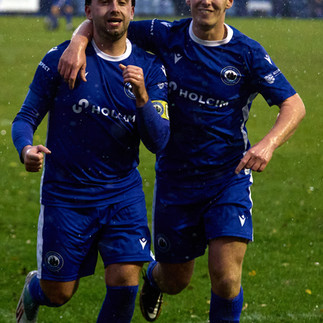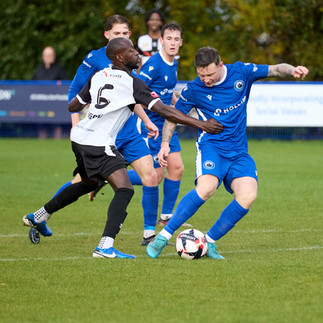 On the stroke of half-time, it was the turn of Baffins' other centre-half - this time Ed SANDERS finding the target after another well-placed delivery from Bell. Bemerton defender Jordon Matthews was sin-binned shortly after for protesting the goal to the referee.