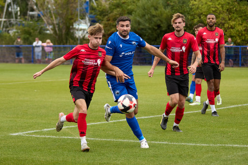 A frantic first-half saw ten-man Petersfield a goal up at the break, after Cal Kimber struck from the penalty spot after Fin Bello was sent off for a second yellow card.